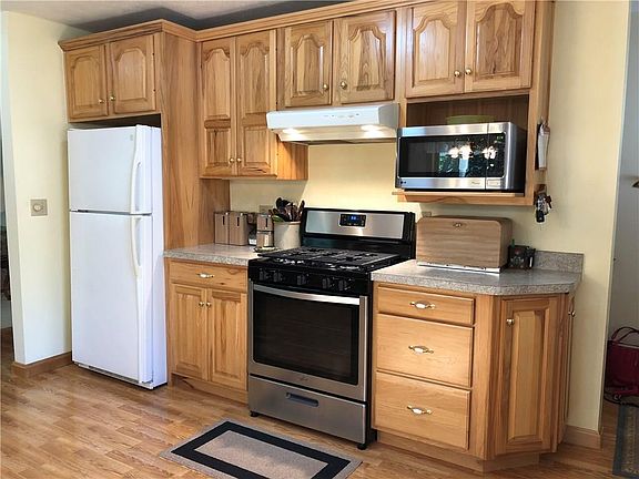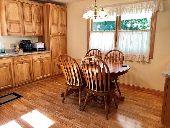 This expertly maintained home with large rooms and an open concept has so much to offer: most windows have been replaced, 2016 roof, large addition and remodel was done in 2004 which includes a completely new kitchen, front porch, side porch, flooring, front entry door, heated gutters and new electrical service. The lower level game room makes a nice cozy spot with the pellet stove, bar, and room for friends. The detached garage has a second level for storage. Convenient location too!