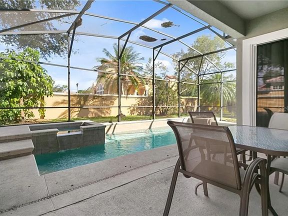 Beautiful poolScreened poolGranite countersCovered porchOversized cabinetsTile roofSpacious entry