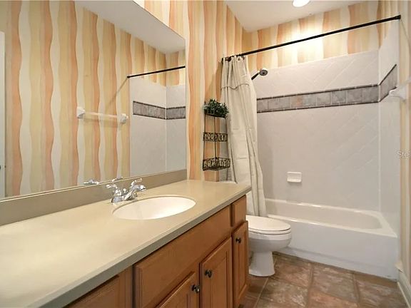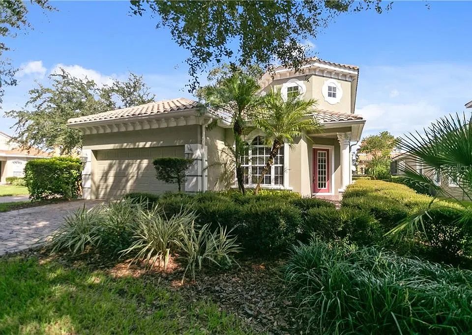 Beautiful home in desirable 24 hour guard gated Vizcaya! Enter into your spacious entry with its elegant formal living room with cathedral ceilings and formal dining area with coffered ceilings and a gorgeous custom built in dry bar with granite counters and shelving. The large kitchen features oversized cabinets, stainless steel appliances, a closet pantry, and granite counters. The kitchen conveniently overlooks the dinette and the family room which opens out only to covered porch and screened pool. The master bedroom and office are conveniently located downstairs, while the secondary bedrooms and a large loft are upstairs. Fantastic home with tile roof and beautiful pool and spa. You'll love living within walking distance to Restaurant Row, Trader Joes, and being just a short distance to either Disney/Lake Buena Vista, or Universal. Wonderful home, amazing location! Neighborhood also has a community pool and gym. Will be available the first week of October.