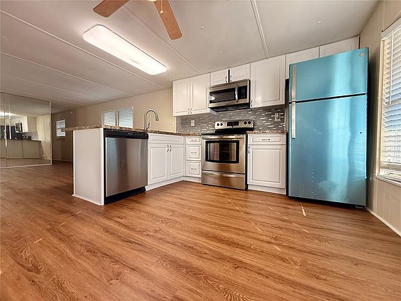 Discover this charming 2-bedroom, 1-bathroom home situated on a fully fenced lot in a no-HOA community. As you arrive, you’ll appreciate the covered carport and additional side parking pad, ideal for an RV, boat, or extra toys. Step inside to find updated flooring throughout and an abundance of natural light that enhances the open layout. The home features a kitchen/living room combo, creating a welcoming space perfect for entertaining. The kitchen is equipped with updated stainless steel appliances, a convenient breakfast bar, and plenty of room to prepare your favorite meals. The home also includes updated wall A/C units for comfortable, efficient cooling. Just off the living area, enjoy a fully screened-in porch—the perfect spot to unwind, read a book, or soak in the beautiful Florida weather. Don’t miss your opportunity to see this lovely home today!