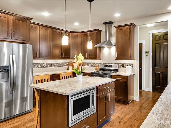 Grand Mukilteo home in a prime location! The covered front porch enters to spacious foyer w/hardwoods flowing seamlessly through the dining room + chef’s kitchen featuring a large center island, granite slab counters, shaker-style cabinets, pantry w/drop zone all open to the light-filled family room, 4 generous bedrooms upstairs w/luxurious primary suite w/vaulted ceilings, spa bath w/soaking tub + walk-in closet, full hall bath & laundry rm. Half flight bonus room w/exceptional ceilings + fireplace perfect for movie night, outdoor back patio leads to a beautifully terraced yard, great for entertaining! Spacious 3-car garage offers ample storage, near Big Gulch Park hiking, breathtaking Puget Sound sunsets, restaurants, beaches + the ferry!