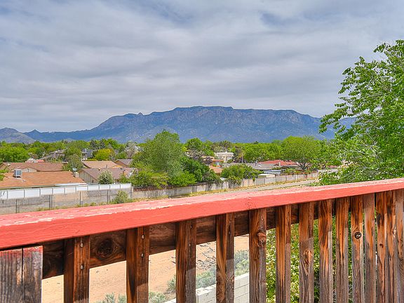 Come home to Crestview! Adorable NE Heights home with 3 bedrooms and 2.5 baths. Lush entry courtyard. Enjoy the living room with soaring ceilings and skylights. Open concept kitchen and dining area. Family room boasts cozy fireplace and spills onto covered patio. Your new backyard is right along miles of arroyo trails (no rear neighbors)! All bedrooms upstairs. Master suite with high ceilings, tons of light and private bath. Upstairs deck has amazing Sandia and city views. 2 more good sized bedrooms round out the package. Coveted neighborhood just moments to shopping, dining, trails, golf and schools. Sold as-is, opportunity knocks!