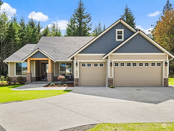 Rob Rice Homes New Construction in East Olympia! A picturesque setting hosting a luxurious new home on a 6 acre lot. With the highest level of contemporary finishes throughout, no detail has been overlooked. From the elegant crown molding to the gourmet kitchen with custom "Cocoa" maple cabinetry and premium Monogram appliances, this home exudes sophistication and style. Main floor primary suite, with a spa-inspired bath, full tile shower and dual walk-in closets. The split bedroom plan provides privacy with 2 additional bedrooms, den and 3/4 bath situated on the opposite side of the home. Rec room, full bath and loft upstairs +a bar area with beverage cooler. Landscaped & irrigated around home, privacy & gated entry complete this package.