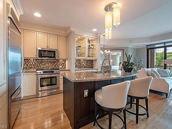 Highly desirable floor plan in the Strada at Mercato! Beautiful open concept living area with wall of impact sliding glass doors bringing in an abundance of natural light. Kitchen has large island perfect for entertaining, Kitchen aid appliances and gas cooking. Spacious flex space that can be used not only as guest bedroom but also used as very comfortable and private home office. Enjoy the outdoor living space on the expansive balcony located off the main living area. The Strada at Mercato offers luxury urban living with resort style rooftop amenities, including a sparkling 52 ft. pool, a gorgeous renovated clubhouse, fitness center and gated dog park. Restaurants and shopping just outside your door including Whole foods, and a 12 screen movie theater. Perfect for vacation get away, rental investment or year round residency. This home includes 2 parking spaces in the owners gated garage and a storage space located on the same floor. Just 1.5 miles to Vanderbilt Beach. Information contained herein deemed reliable but not guaranteed. Information contained herein deemed reliable but not guaranteed *Information deemed Reliable but not Guaranteed*