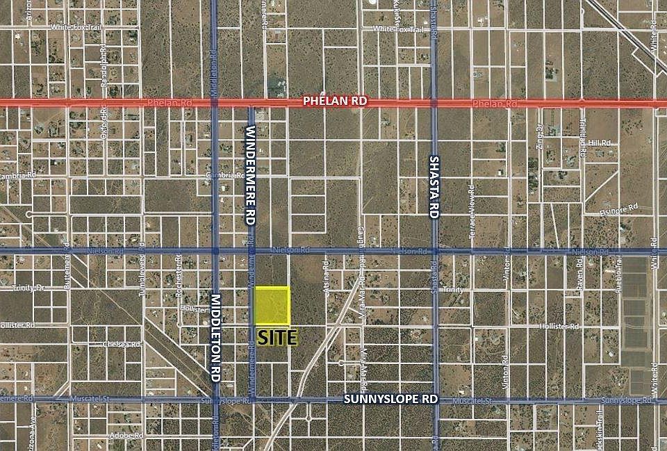 BUILDABLE +/-8.63 ACRES IN PHELAN. Close to Phelan Rd. GREAT FOR HORSE RANCH, MINI ESTATE OR POSSIBLE LOT SPLIT INTO 4 PARCELS. HOMES DIRECTLY ACROSS ROAD PROVIDING EASY ACCESS TO ELECTRIC. All information deemed reliable, but not verified. Buyer is advised to satisfy themselves by rights of investigation and verification.