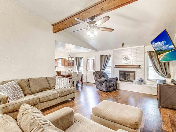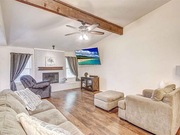 Welcome to this inviting 3-bedroom, 2-bath home featuring a spacious living area with a cathedral ceiling and cozy fireplace. The remodeled kitchen offers granite countertops, ample counter space, and updated finishes. Additional highlights include a storm shelter and a roof that’s just two years old with Class 4 hail-resistant shingles. Located in the desirable Putnam City school district, this home blends comfort, style, and peace of mind.