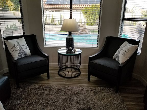 Completely Furnished Down to the Chilled Martini Glasses in the Refrigerator. This Wonderful Retreat Includes a Pool Side Firepit with Seating, Full Barbeque Facilities, Lovely Outdoor Dining, Private Community Tennis Court, and Desert Park Complete with Beautiful Mountain Views.