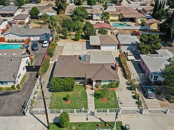 If you are looking for a Mini-Estate Fortress that is completely gated, offering TWO driveways with vehicle, boat or RV access to the rear of the property, STOP the car and call to take a TOUR. I also need to mention the free-standing STORAGE SHED (Man-Cave or She-Shed approx. 21X17) in addition to the 2-car detached garage with attached cover patio, perfect for staying shaded during the summer months. Talk about entertaining, check-out the 11,607 sq. ft. lot with a super large open-air concrete patio slab with brick in-lay accents waiting the Buyer's future outdoor living space adventures. The planted fruit tree yards also awaits the "green thumb" possibilities. Formal entry foyer provides a sitting area, with a step down spacious living room with stone accented fireplace, hardwood flooring & large windows overlooking the front yard. Functional kitchen offers tile counter tops, built-in appliances, wood cabinetry with tons of storage, plus a breakfast bar joining the formal dining;family room area. Individual laundry room has a wet sink with storage shelves and is adjacent to the 3/4 bathroom perfect for guests. (Tax assessor reflects 2BR;2BA, property offers 3BR;2BA). Bedrooms feature hardwood flooring & ceiling fans. Hallway full original Art-Deco bathroom offers some updating, this a blast from the past. True pride-of-ownership for the last 35 years, this residence awaits the imaginative Buyer's, ready to create their DREAM HOME! ONE-of-a KIND with endless possibilities.