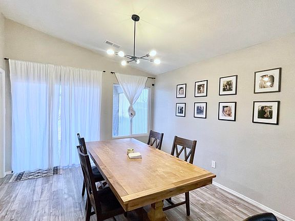 This beautiful, recently remodeled, 3 bedroom, 2 bathroom home is clean and move in ready! This home features high ceilings in the main area and primary bedroom. The open concept floor plan is perfect for entertaining guests, from the living room with a warm and cozy fireplace to the kitchen with counter seating and a large dining room. The primary bedroom has a large bathroom with double sinks and an oversized closet. All bedrooms are large and spacious. The backyard has a covered patio and easy maintenance xeriscape. Close to parks and shopping.