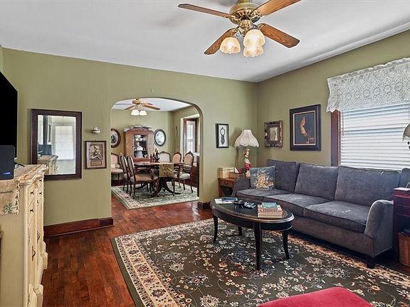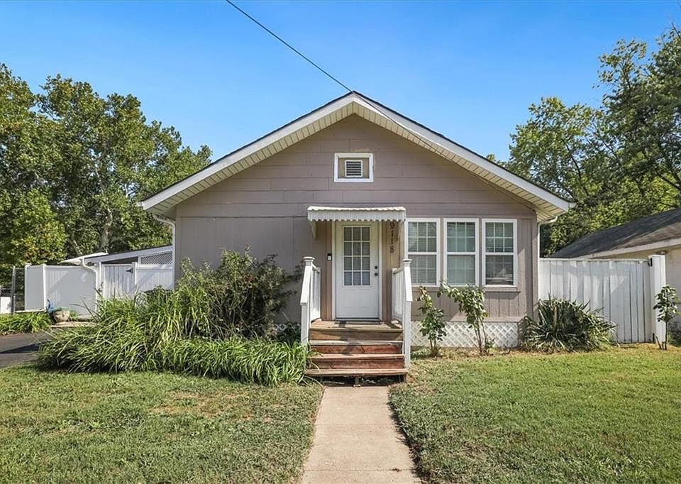 Experience classic farmhouse charm on a picturesque ~1.8-acre setting! This 2-bed/1-bath, 1911 bungalow-style home features wood floors, an old-fashioned enclosed sun/sleep porch, and inviting vintage details. Enjoy a renovated bath and a cozy eat-in kitchen with custom built-ins and clever storage nooks. Two comfortable bedrooms anchor the main level, and original character shines throughout. Relax on the enclosed front porch—perfect for springtime naps or listening to rainfall. Main-level laundry and a pantry add convenience, while a covered back porch and patio extend living outdoors. The park-like grounds offer established hostas/perennials, fruit trees, a magnolia, rich garden soil, and a creek with a spring area and wooden/Amish-built footbridge (per seller). Wide 10–12 ft gates and a fully fenced main yard provide convenient access for larger vehicles, trailers, or equipment (verify local parking/use rules). Near major highway access for easy commuting. Buyer/agent to verify acreage, water source, gate dimensions, and intended uses with the City.