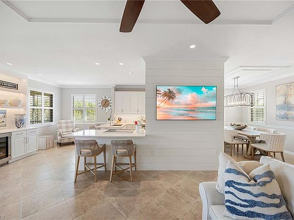 IMMACULATE 2nd floor Coach Home in Treviso Bay – WITH TPC GOLF MEMBERSHIP! This 2,100 square foot property is located DIRECTLY ACROSS from the Di Napoli satellite pool and has been thoroughly upgraded and meticulously cared for. Enjoy the LONG LAKE VIEW (away from 41) from your tranquil, tiled lanai with no-see-um and remote controlled storm screens. SO MANY UPGRADES in this home – including: OPEN KITCHEN where the wall has been removed for an open concept which incorporates the main living area, Bosch appliances, white cabinets with pullouts/tile backsplash/quartz countertops, plantation shutters throughout, no carpet (wood-plank flooring in all 3 spacious bedrooms), custom closets in all bedrooms, many lighting upgrades (recessed and under cabinet), frameless shower door and updated cabinet/countertop in the guest bath, beverage bar with Subzero beverage refrigerator, and epoxy floor in the 2+ car tandem garage. New HVAC - Fall 2024! Treviso Bay features an 18 hole - par 72, Arthur Hills designed, championship golf course. Enormous clubhouse with full-service restaurant/bar, locker & card rooms, social activities room and well-stocked pro shop. Looking for a day away from the golf course? Treviso Bay has unmatched amenities, featuring: on-site spa/salon, fitness center with instructors and daily classes, 8 tennis courts, resort style pool with recently renovated poolside restaurant/tiki bar with daily happy hour specials, bocce, pickleball, and SO MUCH MORE. The 24-hour guarded; gated community is located approximately 5 miles from 5th Ave/downtown Naples which offers world class shopping & dining as well as some of the most spectacular sunsets you will find anywhere in the world. You do not want to miss the opportunity to own this home in paradise. It is truly a MUST SEE!