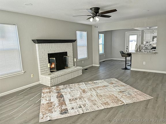 Beautifully remodeled 3-bedroom, 2-bath home in the heart of Tulsa. This move-in-ready property features brand new lighting, ceiling fans, and appliances, along with an open kitchen showcasing a large island, granite countertops, plush carpet, and stunning vinyl plank flooring. Both bathrooms have been fully updated with new tubs, new toilets, fixtures, and vanities, while the interior and exterior boast fresh paint. All new windows and new interior and exterior doors. New roof. Newly paved front entry, all the sidewalks and porch in the back have been concrete, and new sod in the back yard. New fence and storage shed. Conventionally located near shopping, schools, and major highway. This home perfectly blends comfort.