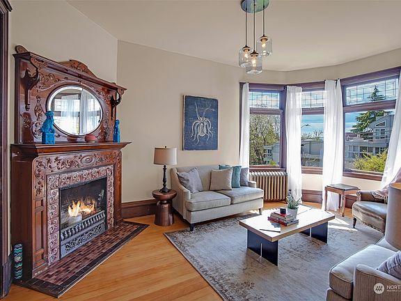 Quintessential Queen Anne abundant w/ charm & character! The historic Ankeny-Gowey house has been impeccably cherished since 1891 & near all the stores, restaurants, parks, bus lines & many more of life's desires. Going to a concert or a game? Don't worry Sea Center/Climate Pledge Arena is just around the corner! Watch the NYE/4th fireworks from your backyard as the Space Needle lights up. Entertain guests for a BBQ on the patio complimented by the beautiful mature landscaping. Drink a cup of tea in your sitting room overlooking Elliot Bay & Olympic Mtns! Refinished fir floor on main level. Possibilities are endless, zoned LR3 could allow you to sub-divide for a large DADU or 2 additional SFH (buyer to verify). Use MIL income to qualify.
