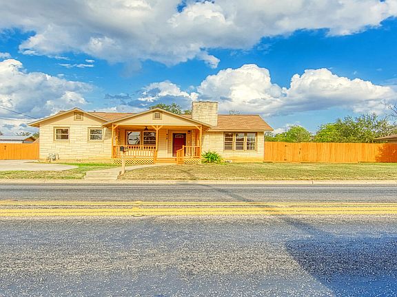 Charming Midcentury Home in Great Location!! This 2026 sq ft, 3 BEDROOM, 2.5 BATH home built in 1947 sits on a .66 ACRE LOT and features a LARGE, FULLY FENCED BACKYARD with an additional private space behind the 2 CAR, OVERSIZED DETACHED GARAGE with attached WORKSHOP. The expansive living/dining room features original HARDWOOD FLOORS and a FIREPLACE while the spacious eat-in kitchen overlooks the front of the property. The closed-in porch is ideal as an OFFICE or FLEX SPACE and the laundry is conveniently located inside one of the bathrooms making it efficient while saving space. The cement driveway provides ample parking with plenty of space for easy turnaround. Located near stores, restaurants, schools and emergency services, it would also be an easy commute to San Antonio or to the Eagle Ford area.