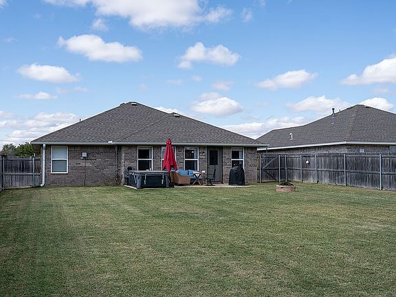 The backyard is perfect for entertaining or unwinding, featuring a concrete patio slab, cozy fire pit, and a hot tub ready for relaxing evenings.
