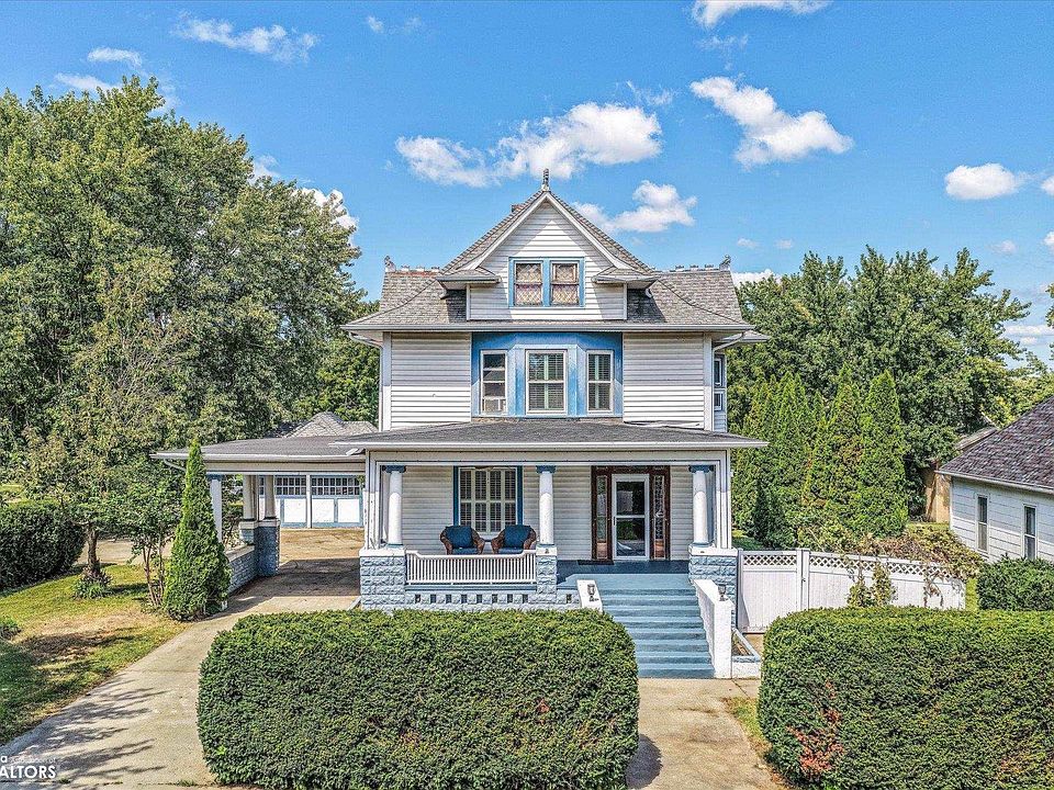 Rarely available, stately 4-bedroom, 3-bath Victorian home on historic Silk Stocking Row, thoughtfully restored to its former grace while blending modern convenience. Two fireplaces add warmth and character, while tall wooden columns with intricate terra cotta capitals define the carport and welcoming front porch, perfect for relaxing. One-inch tiger oak flooring flows throughout both levels. The kitchen offers an island with Jenn-Aire cooktop, maple cabinets, and pantry drawers designed for easy access. Comfort upgrades include heated floors in the main baths and kitchen, plus a jet-air tub in the lower bath. The finished basement features flexible living space. Outdoors, enjoy mature fruit trees, grapevines, and the privacy of hedges along with a 6-foot vinyl fence. It is a rare opportunity to own a classic home that honors tradition yet embraces today’s lifestyle.