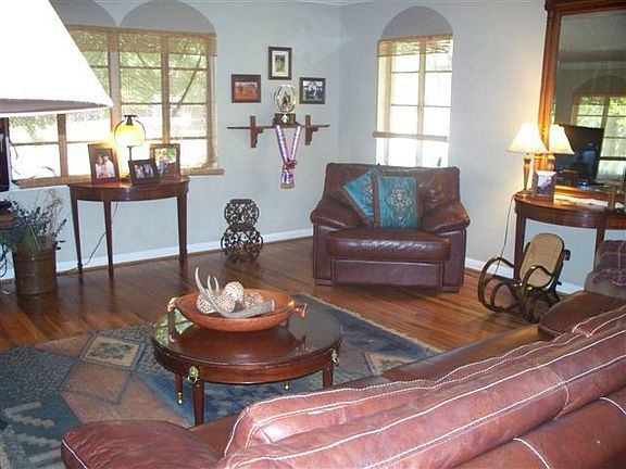 IF YOU LOVE REAL HARDWOOD FLOORS~HERE THEY ARE! Enter through a large foyer into a very comfortable 3BR/2B on quiet, secluded street w/large tree-shaded well-landscaped yard; Living room has a fireplace and wonderful built-in bookshelves; Built-in buffet in dining room; Country kitchen w/room for table to eat everyday meals, tile countertops & deep double sink. Unique glassed in sunroom w/gorgeous tile flooring; Original garage has been converted to gameroom w/full bath, painted concrete floors & wall heat/cool unit. Additional insulation was previously added in attic of home & gameroom. Large utility room is across from sunroom through a lovely enclosed patio area with gravel/tile walkways, vine-covered latticed overhead making shaded sitting & plant areas for outdoor lovers.