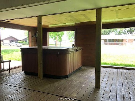 Large corner lot, recent metal roof, tile floors throughout and some new appliances. Fenced backyard with with covered deck and hot tub (conveys). New windows in living room and new front door. Come put your touches to this open floorplan.