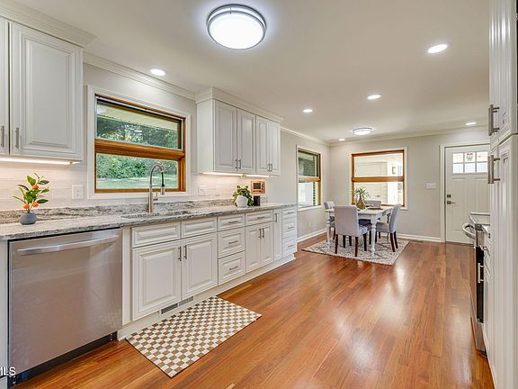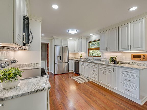 Charming Mid-Century, Tri-Level with Modern Updates & Timeless Character. This beautifully maintained home has only two previous owners and has been lovingly cared for throughout the years. With three large bedrooms, 2.5 baths, a spacious living room, and a partially finished basement, this home offers comfort and functionality. Step inside to find original character and modern upgrades. The home has charming details like natural wood window trim, crown molding, and a stunning stone fireplace, with recent renovations that have elevated it to today's standards. The heart of the home is the brand-new kitchen, featuring granite countertops, a stylish tile backsplash, all new upgraded cabinetry, and brand-new, high-end appliances including a convection electric range and a refrigerator serving craft ice. The living, kitchen and dining areas are enhanced with natural solid Brazilian Cherry hardwood floors, creating a warm and elegant feel. There are two full baths on the main level. The main bath has been tastefully updated with upgraded features including double vanities with LED backlit, anti-fog mirrors, blue tooth speaker and a walk-in shower with a rain head faucet. The lower level includes a partially finished basement with a second wood burning fireplace and built-in bookcase; perfect for a family room, game room, or home office and a half bath. There's also a dedicated workshop area with work bench for hobbies and projects. Outside offers a nice two car carport, sitting area, storage building, a level backyard, and a well-established neighborhood close to downtown city conveniences.