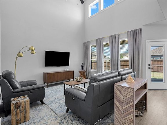 Welcome to this corner lot home offering 4 spacious bedrooms, 3 full bathrooms, a game room, and media room, all within 2,470 sq ft of modern living space. Step inside and be greeted by soaring two-story ceilings in the living area, drenched in natural light thanks to a wall of windows that bring the outdoors in. The open-concept layout flows seamlessly into the chef’s kitchen, featuring sleek white cabinetry, stainless steel appliances, a large island with seating, and a stylish herringbone tile backsplash. The primary suite is tucked away on the main floor for privacy and includes a spa-like bathroom with dual vanities, a luxurious soaking tub, a separate walk-in shower, and an expansive walk-in closet. Upstairs, you’ll find two generously sized bedrooms, a full bath, a large game room perfect for casual entertaining, and a media room ready for movie nights or gaming marathons. Enjoy evenings in your private backyard with plenty of room to build your dream outdoor living space or pool. The home sits on a large corner lot with attractive curb appeal. This home is in an ideal location near US-287 and TX-360, placing you within reach of shopping, dining, and entertainment in Mansfield, Arlington, and Fort Worth. Zoned to highly rated Mansfield ISD schools, this home also offers easy access to Joe Pool Lake, hiking trails, and Mansfield National Golf Club for weekend fun. Don't wait!