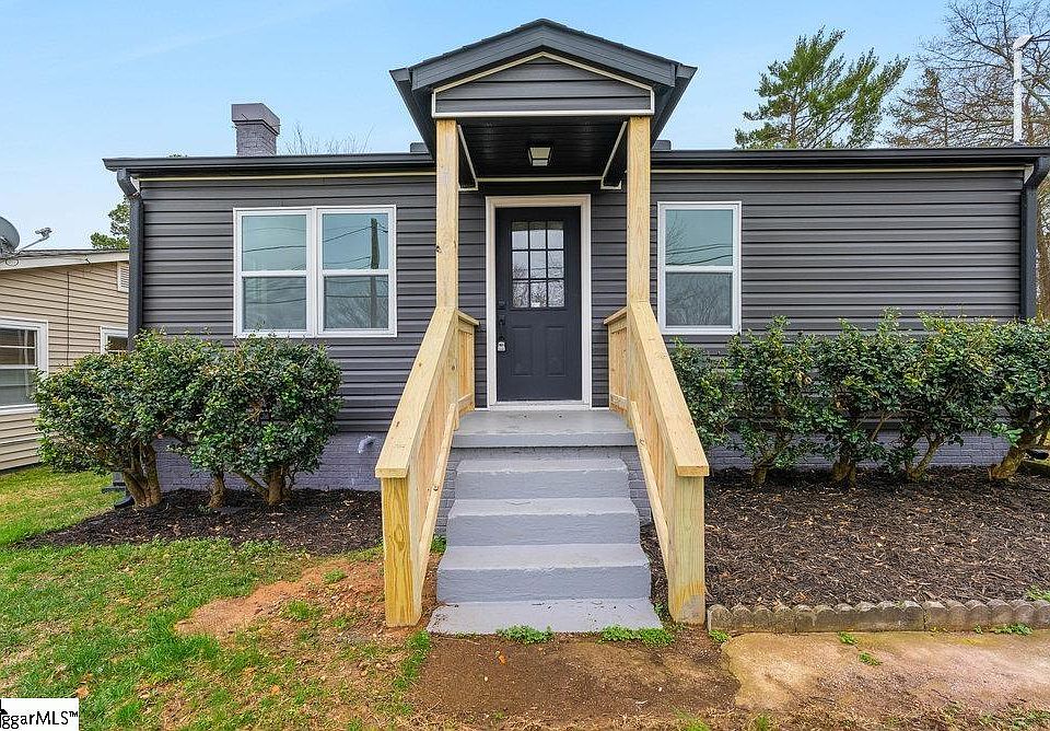 Downtown Easley living + an ADORABLE turn key home! New roof, gutters, vinyl siding, HVAC/furnace, windows, electrical panel... you name it. You'll love the new charcoal siding and covered front porch with farmhouse beams. The entire home is Luxury Vinyl plank with the exception of marble tile in the bathroom. The kitchen offers QUARTZ counters, tiled back splash, farm house sink, stainless steel stove, and the cutest place for a kitchen table by the window. The bathroom has a modern luxe vanity, tiled shower, and updated lighting fixtures (as seen throughout the home). The yard is flat with some trees for privacy. Schedule your showing today!