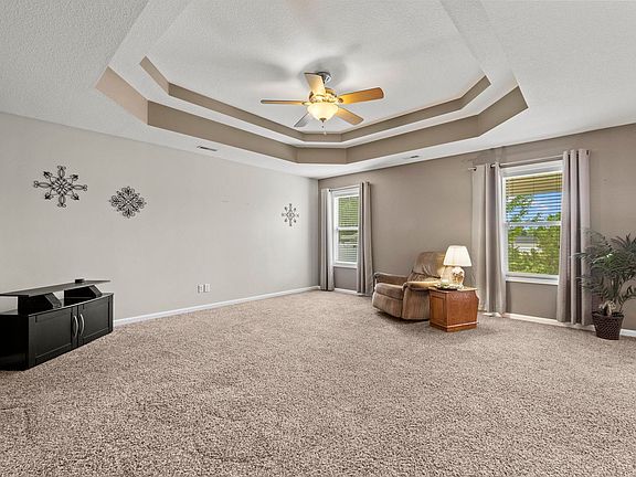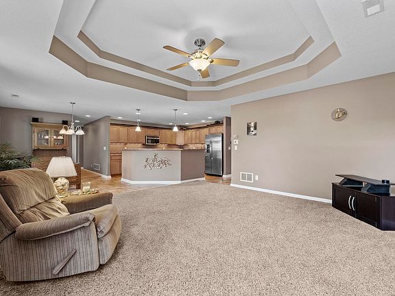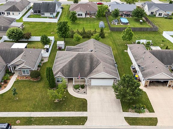 One of a kind custom built home. Welcoming front porch greets, as you enter into the arched entry & foyer. The split 3 bedroom plan offers 2 bedrooms to the front of the home with large closets & spacious shared full bath. The Great Room, with stepped ceiling, fan & wall of windows, overlooks the covered patio with extension seating or grilling area. Also a special features is the 3 season Room & 8x8 shed. The open Plan features the Dining Area & Spacious Kitchen, with huge angled Island, Wall of cabinets, plenty of counter-space, under cabinet lighting & 2 pantry/storage spaces. All appliances are included but are not warranted. The Main Bedroom features a step ceiling, large walk-in closet, linen closet & bath with walk-in shower. All bedrooms have ceiling fans. Leading down the hall is the large laundry with half bath & extra storage cabinets. Oversized garage, 24x23 with a back area for all the mechanical, leaving you full space for vehicles. This home has been gently used and lovingly cared for.