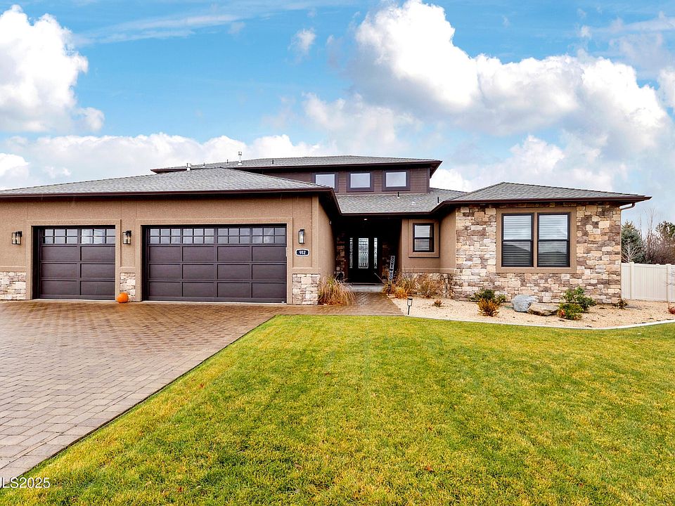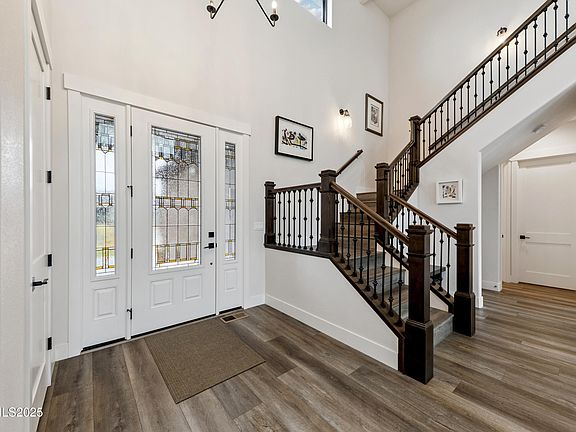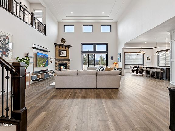 Experience refined mountain living at 912 Holstein Court, a stunning 4-bedroom, 3.5-bath residence offering 3,573 square feet of beautifully crafted space. Built in 2022 and set on a peaceful cul-de-sac, this home captures sweeping views of the Sierra Nevada, Job's Peak, and the picturesque valley below—an inspiring backdrop for everyday living. Soaring ceilings, sun-filled living spaces, and curated upgrades throughout create an atmosphere of modern elegance. The open-concept design seamlessly blends indoor comfort with outdoor serenity, featuring an inviting front porch and a spacious rear patio ideal for morning coffee, evening gatherings, or simply soaking in the mountain air. Thoughtful landscaping enhances the home's clean, contemporary aesthetic while ensuring low-maintenance enjoyment. Just minutes from in-town conveniences and a short drive to Lake Tahoe's world-class recreation, this exceptional property offers a true luxury lifestyle—where comfort, natural beauty, and adventure meet.
