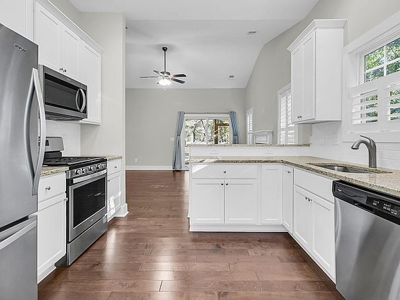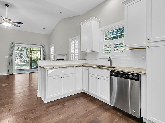 This lovely move-in-ready home on James Island offers the perfect blend of comfort and convenience, located just minutes from Downtown Charleston and Folly Beach. With an open floor plan, this property features 1984 square feet with four bedrooms, two baths, and a two-car garage. The interior boasts beautiful hardwood floors with 4'' trim and plantation shutters throughout, creating a warm and inviting atmosphere. The kitchen is a true highlight, showcasing granite countertops, a subway tile backsplash, white cabinets, and stainless-steel appliances, including a gas stove. Open to the kitchen, the family room has vaulted ceilings with a wood burning fireplace. The shiplap under the bar adds a charming touch. The primary suite is a retreat, with vaulted ceilings, a spacious tiled shower,and a double vanity topped with elegant granite. The additional bedrooms share a well-appointed hall bathroom, providing comfort and functionality. The room above the garage offers versatile space that can be used as a fourth bedroom, home office, or recreational area. Step outside to enjoy the screened-in porch, perfect for relaxing or entertaining, while the large yard offers endless possibilities. The property also includes an extended driveway, perfect for parking a boat or camper with no HOA. With undeniable curb appeal and thoughtful design, this home is a must-see. Schedule a showing today and make it yours!