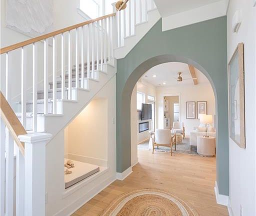 Large tiled showerUnmatched architectural detailsSleek quartz countersOversized islandMudroom with pantryStunning hardwood floorsPowder room