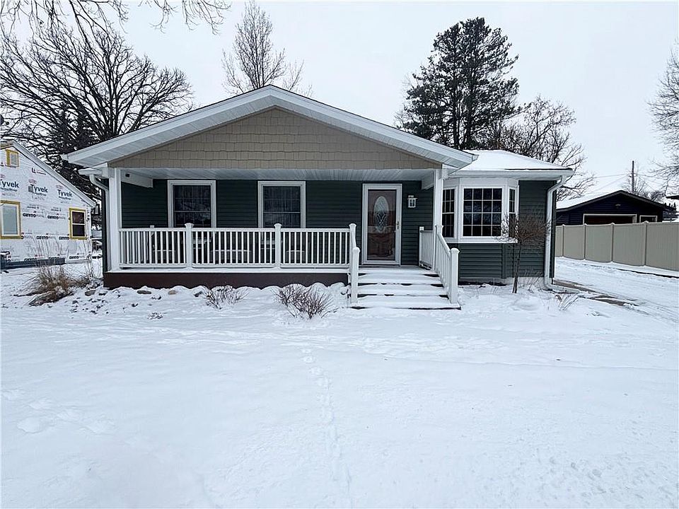 Welcome to this PRE-INPECTED charming 3-bedroom, 1-bathroom home nestled on a .19-acre lot in the City of Rice Lake! Conveniently located near schools, healthcare, shopping, and groceries, this home offers all the perks of city living. The main level features an easy-flowing layout with a spacious kitchen that opens to a bright and airy dining room. The inviting living room showcases a beautiful stone fireplace, while the main floor is complete with two bedrooms, a full bathroom with a walk-in shower, and convenient main-floor laundry. Downstairs, you will find a large family room and an additional spacious bedroom, providing plenty of room for everyone. Step outside to enjoy the beautiful backyard or relax on the covered front composite deck. Storage is no problem with the oversized 2-car detached garage and additional storage shed. Feel at ease knowing both the home and garage feature a new roof, siding, and several new windows. This home has been meticulously cared for and thoughtfully updated, ready for you to move right in!