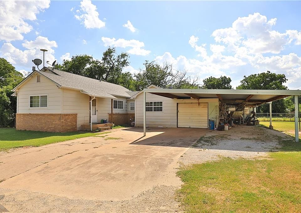 3 large bedrooms and 3 baths! Open concept living, dining, and kitchen. Plenty of parking for extra vehicles or boat. Corner lot. Small town living, just minutes from Abilene. Work space or workshop areas attached to garage and home, cooled with window units.