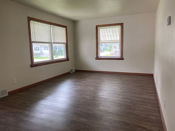 Large 2 bedroom 1 bath lower triplex is ready to make your own! Water included. Two entryways, one with private entry and a porch street side and one in the hallway with access to the basement. Large living area with Central Air! Eat-in kitchen with so many hidden treasures including slide-out shelves, a lazy susan, roll out trash/recycling bin and a built-in corner shelf with mirrors. Kitchen includes all major appliances. Both rooms with spacious closets. Bathroom with tub/shower combo and additional shelves for all of your bathroom needs. Laundry room with washer/dryer hook-ups and a standup shower with bench seat. This is a smoke and pet free property.