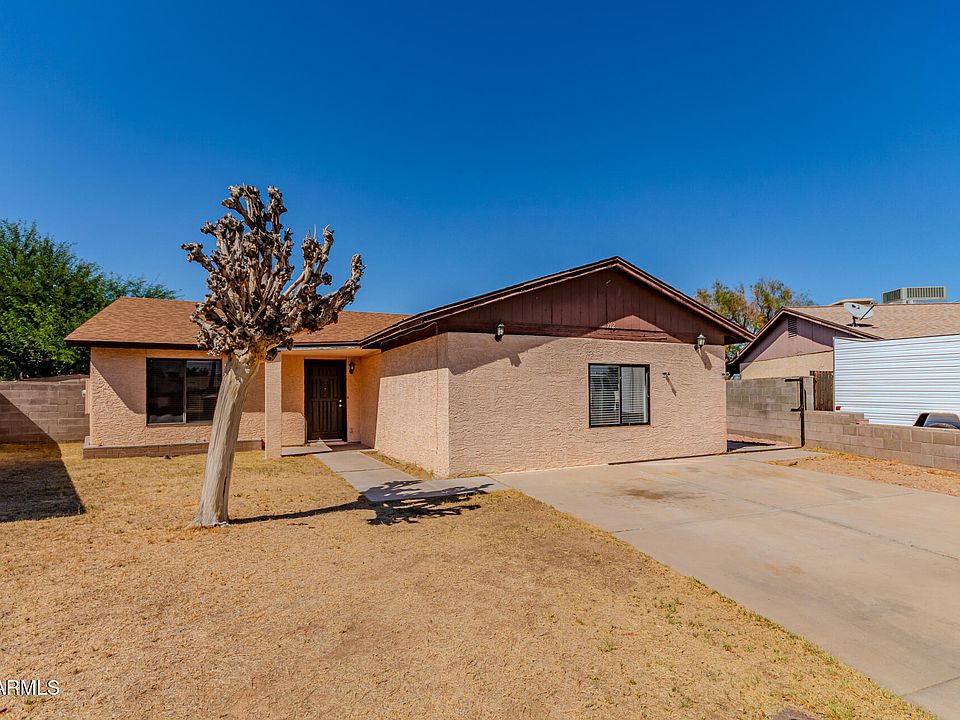 Now available for rent! This one-story home offers a bright, open layout with tile flooring, neutral paint, and abundant natural light throughout. The immaculate kitchen features granite counters with a stylish backsplash, stainless steel appliances, white cabinets, and a pantry, along with a convenient laundry area. The main bedroom boasts two spacious closets and a private bathroom with a beautifully tiled shower. A huge secondary bedroom provides versatility and can easily serve as a game room, home office, or guest suite. Enjoy the outdoors in the generous backyard complete with a covered patio, storage shed, mature tree, and plenty of play space. This move-in-ready home combines comfort and functionality perfect for your next rental!