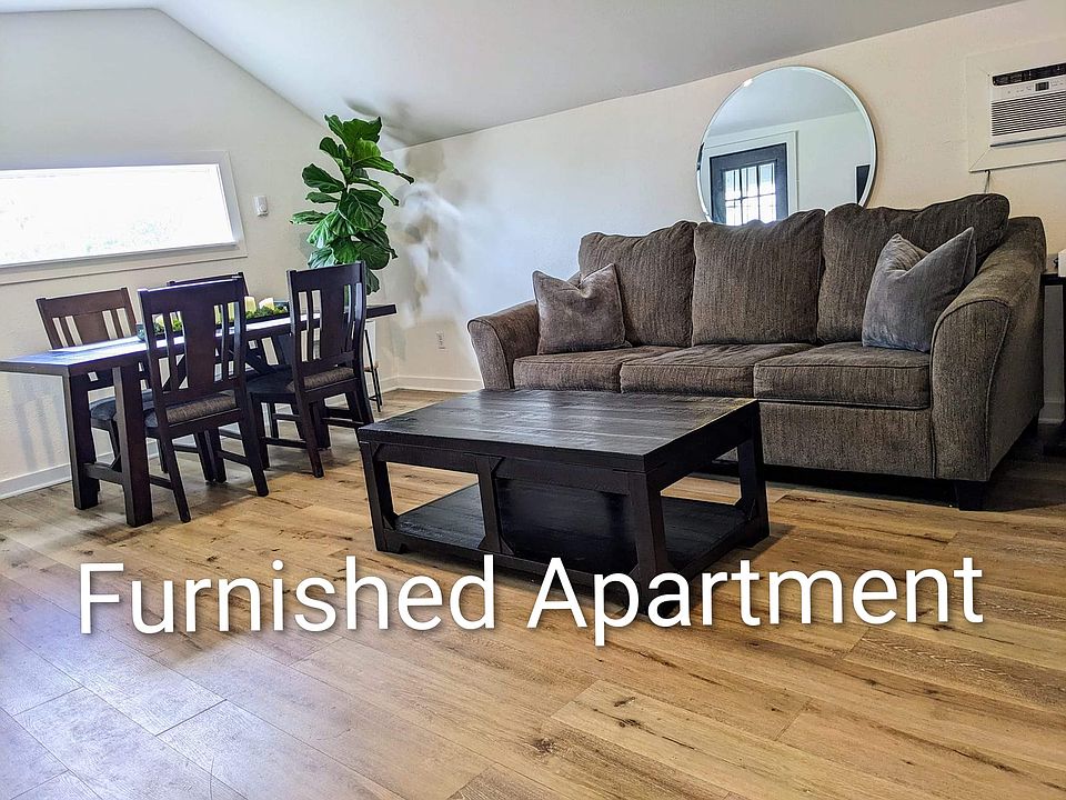 Inside, the living areas boast an open layout and stylish, easy-to-maintain vinyl flooring. The unit comes equipped with a washer and dryer, kitchen, living room, dining area, full bath and two bedrooms. One designated parking spot onsite.