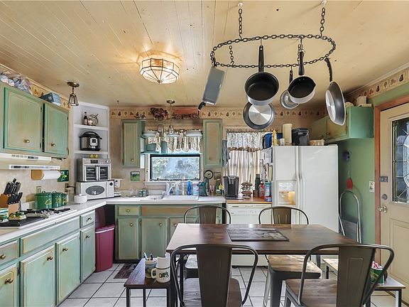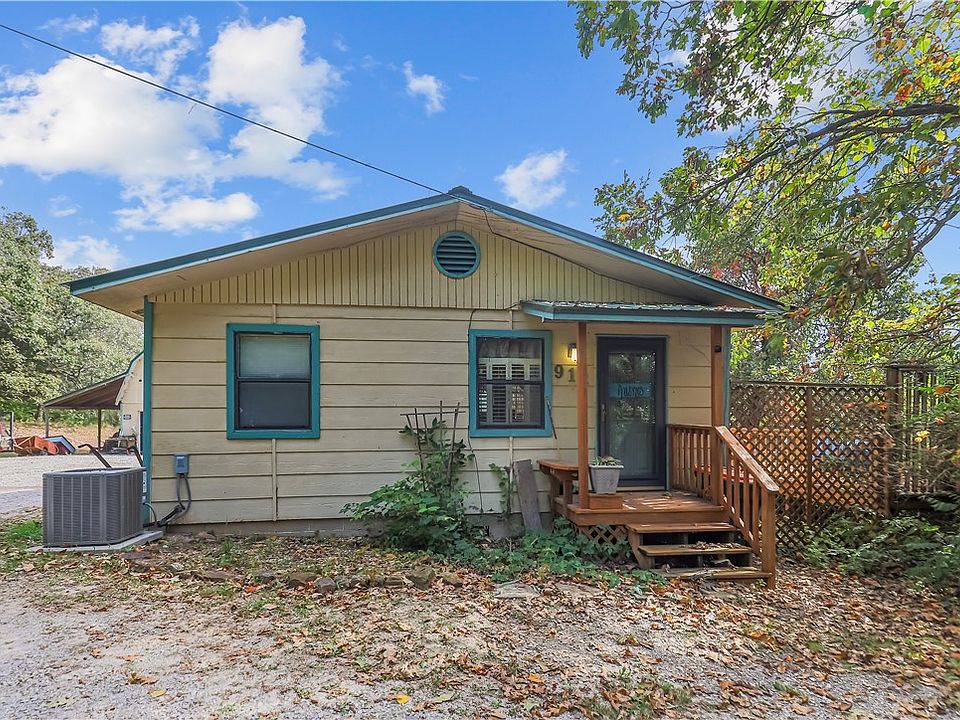 This charming 1bed home perfectly blends character and functionality in just under 600 square feet. The real showstopper is the massive deck featuring a built-in fireplace surrounded by seating and adjustable built-in blinds on both sides, creating an ideal outdoor entertaining space. The generous shaded yard offers plenty of room to relax, while the garage provides upstairs storage plus a carport that conveys with the property. Inside, you'll find beautiful antique doors from the 1920s and plantation shutters gracing the living area. Flooring includes carpet in the primary bedroom, tile in the bathroom, kitchen and hallway, and wood floors in the living area. An electric fireplace is included for added ambiance. The kitchen features a unique two-burner gas cooktop with a grill side. The primary bedroom includes a closet and built-in storage, while the bathroom offers a corner shower and ample storage. Recent updates include a metal roof installed 8 years ago and HVAC plus water heater replaced 5 years ago.