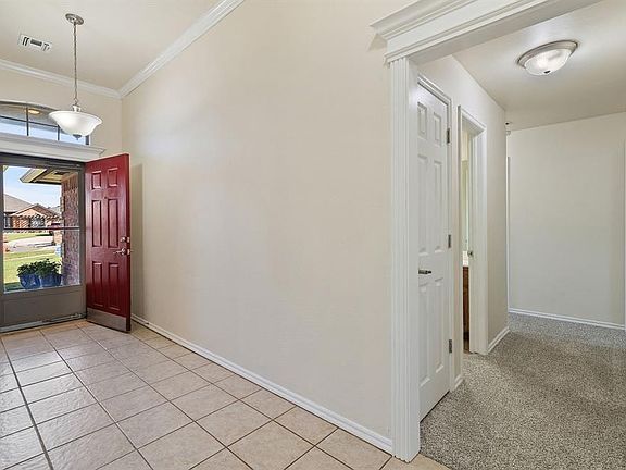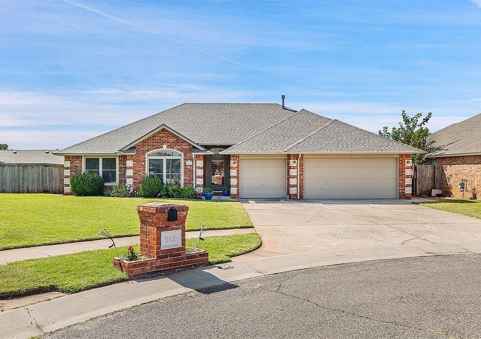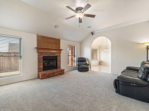 So many updates on this spacious home in a cul-de-sac with no HOA!! New roof just installed! New paint! New carpet! All new windows just installed 2 years ago! Heat and Air replaced about 8yrs ago. Walking into the front door puts you in a large entry way that leads you to an inviting living room with a gas log fireplace. Floorplan has a separated primary with ensuite featuring a jetted tub with a walk through closet and a private toilet area. Two more spacious bedrooms that view the front yard. The large laundry room has storage and storage closets located in the hall. Kitchen cabinets have a storage cabinet area for spices on the side of the refrigerator space and an island with more storage and counter space. New Stove and Microwave just installed! Dining room windows give you a view of the covered back porch. Easy access to I-35 or I-240. Buyer to verify info and schools.