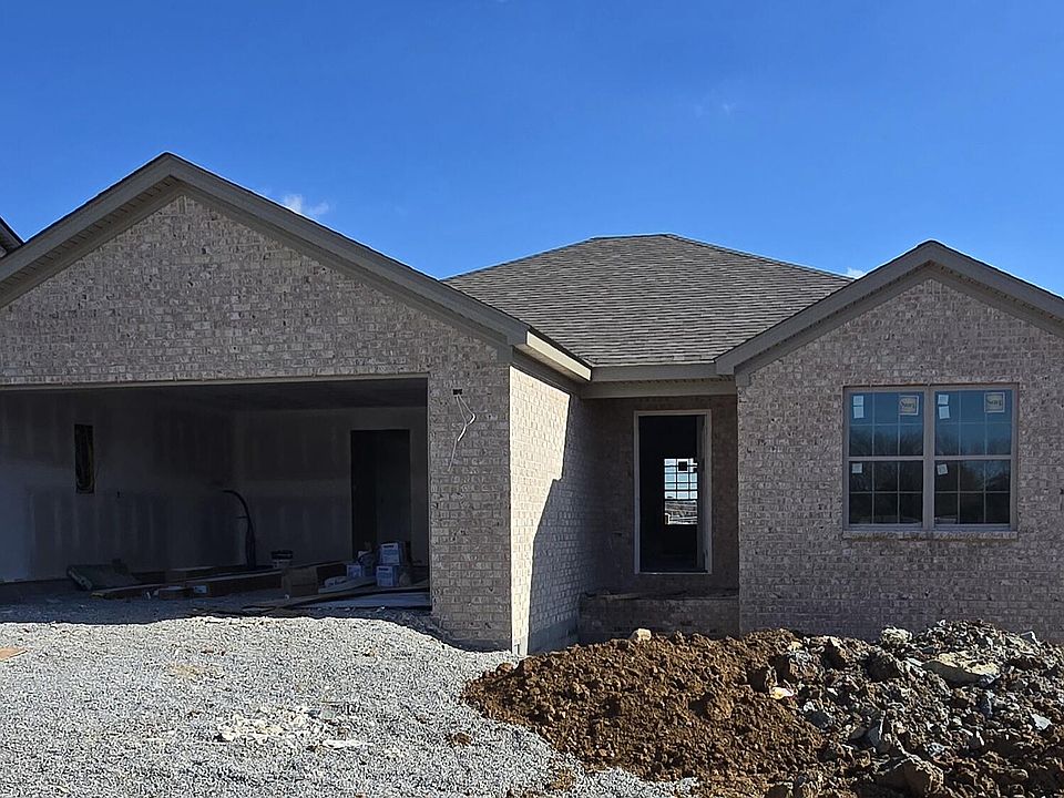 Welcome to this beautifully designed 3-bedroom, 2-bath ranch that blends modern style with everyday comfort. The inviting entry hallway leads to a front bedroom and a coat closet with extra storage. The spacious living room features vaulted ceilings and abundant natural light, creating a bright and welcoming atmosphere. The open-concept kitchen is a chef's delight, showcasing stainless steel appliances, granite countertops, a walk-in pantry with pocket door, and a large island with sink and bar seating. A bright dining area with double windows and access to the partially covered back deck makes indoor-outdoor living effortless. The private primary suite offers tray ceilings, a spa-like en-suite bath with granite double vanity, custom tile shower with glass door, and a generous walk-in closet. Two additional bedrooms and a full bath provide flexibility for family, guests, or a home office. The spacious utility room connects the kitchen to the attached garage and includes a front-load washer and dryer, adding convenience and value. The backyard adjoins a common area, giving the outdoor space a more expansive feel without added maintenance. Ideally located near local dining, shopping, and I-75, this home delivers comfort, function, and style—all on one easy-living level. A 7-year limited builder warranty is included for peace of mind.