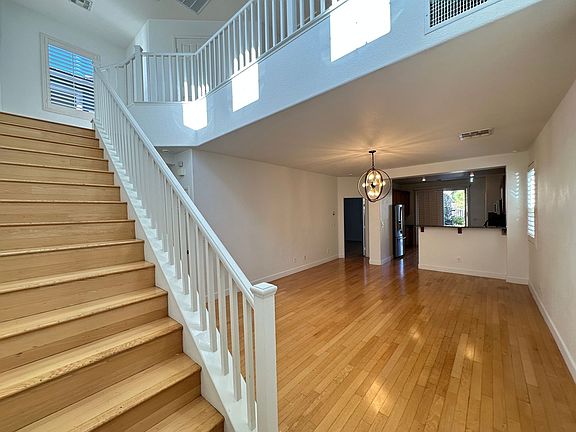 Beautiful 2 story home in Summerlin featuring 3 bedrooms and 2.5 bathrooms! This spacious layout includes dual primary suites - one downstairs with a built-in Murphy bed and another upstairs. Both primary closets have built-in shelving. Enjoy vinyl flooring throughout - NO CARPET with ceiling fans. The bright loft offers additional living space. Price includes $50 for trash/sewer.