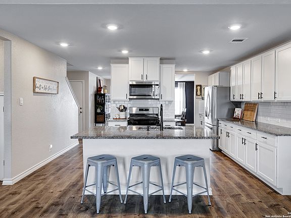 OPEN HOUSE SATURDAY MARCH 22ND FROM 11-2pm. Immaculate like-new home in Cibolo! Well-manicured 5 bed, 2.5 bath with an open floor plan concept. Gourmet kitchen features beautiful granite countertops, stainless steel appliances, island w/ bar seating, tons of lighting, subway tile backsplash, and a great sized formal dining area. Huge living area with vinyl flooring and vaulted ceilings! The master suite comes with vaulted ceilings, separate tub and shower, and large walk-in closet with custom shelving added. Master bedroom is downstairs! Updated light and plumbing fixtures in several areas. Walk upstairs to your loft/game room area and 4 bedrooms! Carpet is in great condition. Great sized secondary bedrooms and 3 of the four have walk-in closets. The entertaining outdoor space is equipped with an extended covered patio and added concrete pad, well-maintained landscaping, a shed, and adequate yard space. The huge backyard is very private!! Additional features are a full sprinkler system, two-car garage, pre-wired for security, 3 sides masonry, and a water softener. Close in proximity to Randolph AFB, shopping/restaurants, New Braunfels, San Antonio, and feeds into the highly desired Schertz/Cibolo ISD schools!!