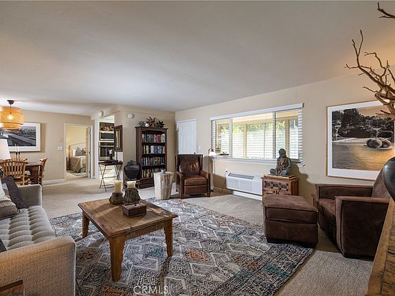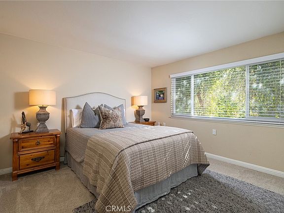 Creekside Charmer! Discover the allure of this upper-level, end-unit home in the sought-after 55+ community of Laguna Woods Village. This popular 'Cadiz' model embraces the serenity of its landscaped setting, making it a haven of peace and privacy in a prime neighborhood location. Bask in the warmth of abundant natural light in this sun-filled retreat, nestled among trees, evoking a unique treehouse ambiance. Recent upgrades enhance both its aesthetic appeal and functionality. Enjoy the comfort of a new A/C and heating system, alongside all-new modern stainless steel kitchen appliances, smooth ceilings, and upgraded window treatments that create a contemporary look throughout. The well-designed open floor plan has a natural flow from living and dining space to the kitchen. An enclosed balcony extends the living area, offering an outdoor living experience surrounded by foliage. Views of trees and woods continue in the primary bedroom, which features new windows and blinds that frame the picturesque surroundings. The adjoining en-suite bath, with elegant travertine flooring, adds a touch of luxury to your daily routine. Added conveniences include a private carport with storage, closely situated for ease of access. The building’s laundry facilities are also conveniently nearby. This coveted location places you just moments from Laguna Woods Village’s exceptional amenities, including Clubhouse 3’s Performing Arts Center, the US Postal Annex, and a nearby nature preserve trail. With an array of dining and shopping options within easy reach, this home is not just a living space but a gateway to a lifestyle of comfort, community, and convenience. Welcome to your sunlit sanctuary amidst the trees.