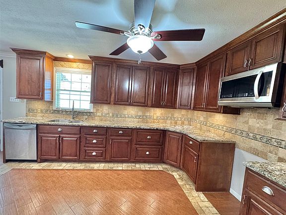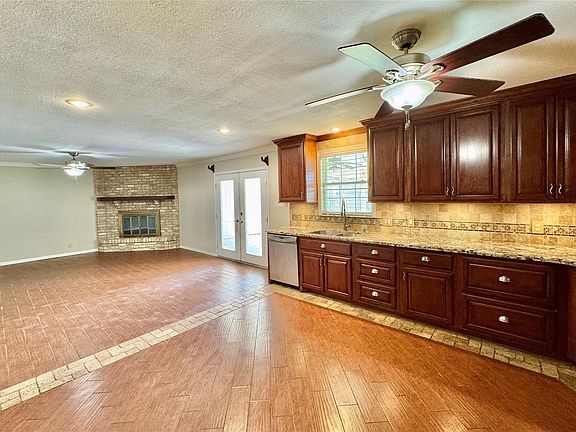 Located in Allan Meadows, Nederland ISD. Open concept floor plan, tile flooring throughout. Living room in rear with fireplace overlooking expansive covered patio and wood privacy fenced back yard. Primary bath features double sinks, jetted tub, separate shower and walk-in closet. Many updates! walking distance to Hillcrest Elementary & Dornbos Park.