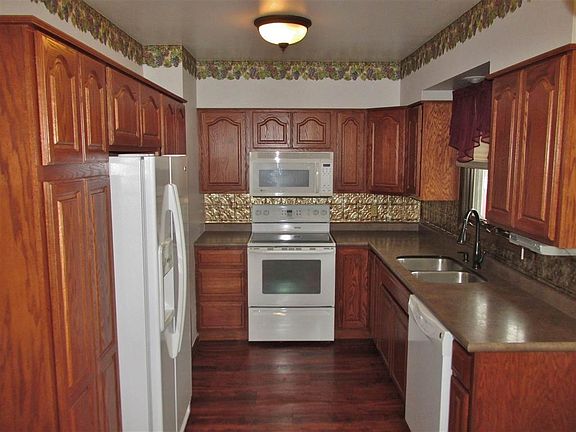 Cute and ready for you to call home! This 3+2 bedroom charmer is just a short walk to the medical center and the school! The main floor features include a nice eat-in kitchen, beautiful cabinetry with pull-out storage drawers, laundry area and full bath. One of the 3 bedrooms has patio door access to the backyard. The lower level has 2 non-egress bedrooms, large family room, 3/4 bath and storage room with workbench. Exterior has single attached garage, fenced yard, shaded concrete patio and includes a separate finished building with cabinets/countertop that would be perfect for family or friends to gather, or use as a summer kitchen (no plumbing), hobby room or storage. Shingles are approximately one year old.