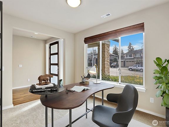 Modern Luxury throughout this Meticulously maintained MainVue beauty! Nestled on a quiet cul-de-sac & convenient commuter location. Features an open-concept floor plan boasting floor-to-ceiling windows allowing an abundance of natural light and office/den w/adjacent 3/4 bath off entry. Relax in the spacious living room w/gas FP & entertain in the sunny dining room & designer gourmet kitchen w/grand island, stunning cabinetry, high-end SS appliances & butler's pantry. Upstairs is versatile flex space plus 4 spacious bedrooms including primary suite w/elegant 5-piece bath & huge walk-in closet. Unwind outdoors all year on the covered deck w/gas FP & recessed lighting. Large fully fenced yard w/garden space and fig & apple trees in the front.