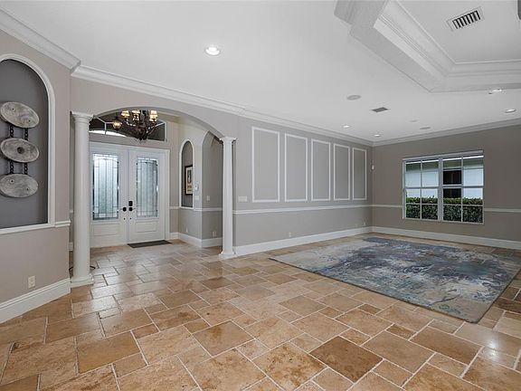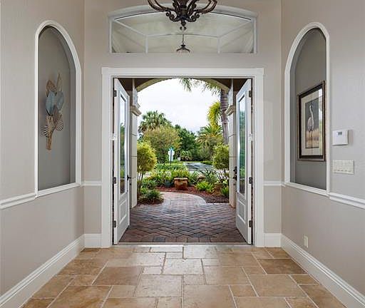 Lovely 3 bedroom 3 bath with Office/Flex Room, ranch home in the prestigious Copperleaf gated community, positioned to capture the most stunning lake sunsets. Complete with in-ground salt water jacuzzi with waterfall, heating system and a newly shuttered porch for peace of mind during storms and storage for outdoor furniture. Impact windows & doors, whole house water system, RO in kitchen renovation 2024 w/ Quartz countertops. New entrance doors, new paint, private office, crown molding & custom closets. Home has Security system & cameras. This is a great home in a great community with newly remodeled club house, playground, tennis and pickelball courts, basketball courts and heated community pool. Contact the listing agent and arrange for a private tour of this exceptional home today.
