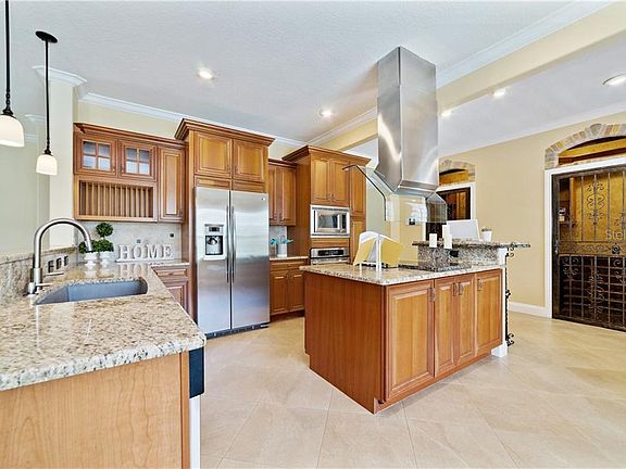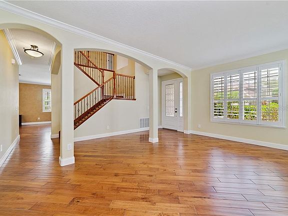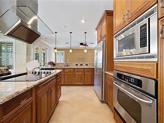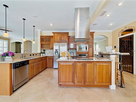 Immaculate 4 bedroom pool home with 9'4" - 10' ceilings on water & conservation, 3,100+ sq ft of living space in the gated community of River Oaks at Timber Springs. Kitchen renovation was the 2009 Parade of Homes Winner with stainless steel exhaust hood imported from Italy, 20" porcelain tile, upgraded cherry wood cabinets, crown molding, custom wine room with solid granite flooring & wine fridge. Downstairs family & formal living room have plantation shutters, 5" baseboards & hand scraped engineered wood flooring. Florida room is enclosed with double paned glass & oversized panel pocket sliding doors which open to fully screened in pool deck. The backyard has landscape lighting, Gazebo, mature hedge landscaping providing privacy. Switch back stairs with iron spindles lead upstairs to an open loft with plantation shutters and oversized bonus room with bamboo flooring. The master bedroom has oversized walk in closet, with the master bathroom having a walk in shower, jetted tub, & dual vanity. Additional upgrades include surround sound speakers, counter depth GE profile fridge, rubbed bronze lighting, chandelier, insulated living room ceiling, 8' interior doors throughout, concrete stained garage floor, crown molding, fan lighting, switches on dimmers, french drains and gutters installed, belt drive garage door opener, and oversize garage storage racks. Upgraded NEW AC 2019. Exterior painted 2014, interior painted 2018. Ask your agent for the upgrade list & make an appt to see this home today!
