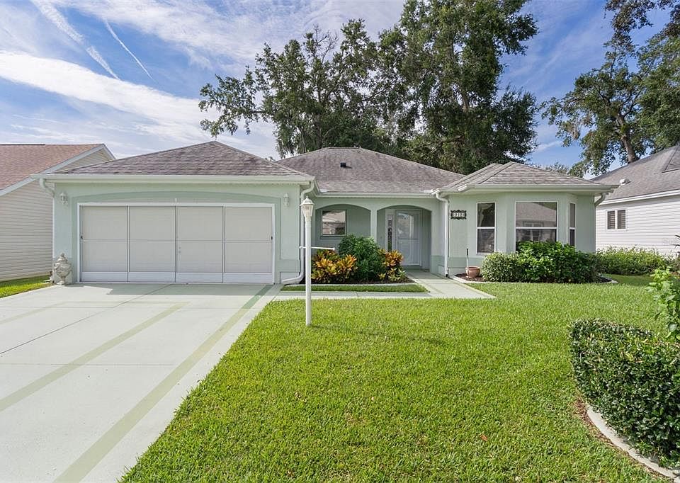 ~NO BOND~ ~ROOF 2018~ ~HOT WATER HEATER 2016~ ~HVAC 2005~ ~NO CARPET~ Welcome to this spacious 3/2 VERA CRUZ model in the desirable Village of LA REYNALDA. Nestled on an offset lot with mature landscaping, this home offers both privacy and charm. Inside, you’ll find high VAULTED ceilings, CERAMIC TILE in the entry, and laminate flooring in the living and dining rooms. The living room includes a ceiling fan, while the kitchen impresses with CERAMIC tile floors, GRANITE countertops, STAINLESS STEEL appliances, TILE BACKSPLASH, ceiling fan, and a sunny EAT-IN area. The primary suite offers laminate flooring, ceiling fan, 2 WALK-IN closets, and a private bath with CERAMIC tile, WALK-IN SHOWER, DOUBLE sinks with GRANITE countertops. Both guest bedrooms feature laminate flooring, built-in closets, and ceiling fans. The guest bath includes CERAMIC tile floors, a tile/tub combo, GRANITE counters, CERAMIC sink, and a linen closet. Additional highlights include an INSIDE LAUNDRY ROOM with WHIRLPOOL appliances, a FLORIDA ROOM under heat and air with ceiling fan, and a 2-car garage with new control system and a sliding screen. This home combines comfort and space—ready for you to move in and make it your own! It is close to both Spanish Springs Town Square and Lake Sumter Landing. Easy access to Hwy 441 and CR 466 for all your shopping, restaurant and medical needs!