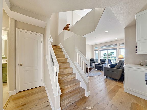 Remodeled front row view property in Vilamoura with unobstructed panoramic views of the Pacific Ocean, Catalina Island, Dana Point Harbor, coastline, city lights, hills and sunset views. All buyers want a home with this view and the best part is the view can be enjoyed from the kitchen, living room, dining room, primary bedroom, loft and the whole backyard. This stunning turnkey home has approximately 1,581 sqft with 2 bedrooms, a spacious loft that can easily be converted into a 3rd bedroom, 2.5 bathrooms, a 2 car direct access garage, engineered wood floors, central AC, has been re-piped, dual pane Milgard windows, Stoneside custom window treatments and more. This type of view property rarely comes on the market. Your chef's kitchen has stainless steel appliances, custom upgraded cabinetry, leather granite countertops and custom tile backsplash. The dining room is open to the kitchen and also has countertop seating. The living room has a remodeled fire and ice fireplace, custom wine bar area and a dual pane sliding glass door leading to your backyard. Upstairs you'll find a huge loft that has a stunning view. The primary suite has vaulted ceilings, a private balcony to savor the ocean views and an ensuite bathroom. The primary bathroom has dual closets with custom closet storage systems, a double sink custom Quartz vanity and a remodeled frameless walk-in shower. The secondary bedroom features vaulted ceilings and a mirrored walk-in closet also with custom closet storage systems. The highly upgraded ensuite guest bathroom features a frameless shower with a stunning Quartz vanity. Adjacent to the loft, there is also a custom workstation that's perfect for a casual office setup. Downstairs is a remodeled half bath for guests and a laundry closet adjacent to the garage. Your ocean view backyard oasis will be the envy of all neighbors with plenty of room to entertain. Plus, your patio has a large pergola so you can enjoy the views all year long. Vilamoura has no mello-roos and the community has its own private pool and spa. Nearby you'll find the Rancho San Clemente Sports Park, hiking trails, Lifetime Fitness, multiple shopping centers and the San Clemente Pier.