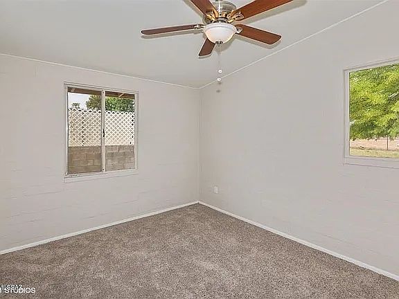 Ready for immediate move-in. Nice clean freshly painted 3 bedroom 2 bath with Air conditioning, ceiling fans in all the bedrooms. 4 Skylights, one in each bathroom and 2 in the kitchen which make the house bright. Kitchen has gas stove and oven, refrigerator and garbage disposal. New gas hot water heater just installer. Nice laundry room with washer and dryer off dinning room. Large fenced back yard with RV/ boat gate and a big beautiful shady mesquite tree, 1 redone storage shed, close to San Manuel Ray Blair Airport. Non smokers. Will consider a small well behaved dog with deposit and monthly pet rent. First months rent and security deposit due at signing, references, credit and background check needed. Sewer included in rent, renter is responsible for all other utilities, water, electric, gas, garbage, internet and cable. Would consider owner carry with $30,000 down.