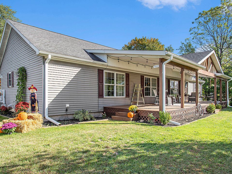 Well appointed family home on just under an acre. Move in ready, with 3 bedrooms, (a possibility of a 4th) with 2 full baths. Master suite has a spacious walk in closet and private bath. A place for everything in this beautiful kitchen, gorgeous cabinets, and ample counter space. Formal dining are opens onto the back yard deck. Living room is complete with a gas log fireplace, with large windows for lots of natural light. Bonus room, that could become the 4th bedroom, office or whatever fits your family. Full basement with high ceilings and an egress door ready for you to finish. Enjoy that first cup of coffee on the beautiful covered porch. 3 bay garage, and a large yard with mature trees. Kitchen appliances will be included. 2 propane tanks, 1 is owned the other is leased from Nottawa Gas.. Water softener is owned. Seller will be reserving some plantings.