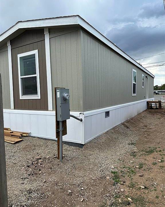 Great opportunity to own a brand new mobile home within city limits. 2 bedroom, 1 3/4 bathroom single wide mobile home at 868 sqft, Still the One model and distributed by Clayton Homes. Land is not included with sale. Some photos of this listing may include virtually staged amenities, furniture or fixtures in the pictures. The seller has picked out the finishes and will share timeline when the mobile home will be delivered. They are built with an add on solar panels but actual solar panels are not included. No Gas line is connected to the lot. Just Water and Sewer and Trash is included in the lot rent for the first year and the landlord will reassess the lot rent based on usage. Currently Lot Rent is $500 a month. The mobile home park is for owner occupied only but their is a discretion on rentals if family and friends occupy the property. Electric is paid by the owner the mobile home. To move forward with a contract the buyer must be pre qualified by a licensed lender in Colorado if financing is needed. Photos are virtually staged by the manufacturer and shared to the listing until actual trailer is delivered to the lot.